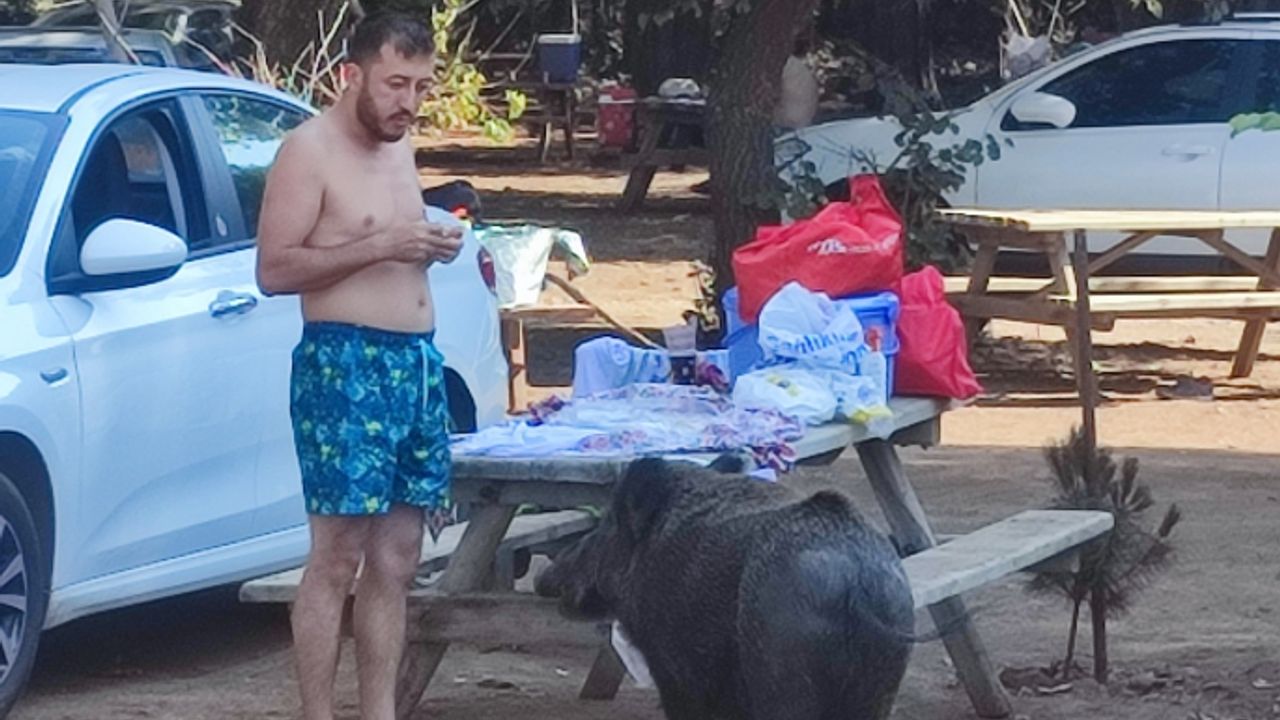 AYDIN (İHA) - Birçok canlı türüne ev sahipliği yapan Kuşadası Dilek Yarımadası Büyük Menderes Deltası Milli Parkı, aynı zamanda yerli ve yabancı turistlerin de gözde mekanları arasında yer alıyor. Yılda 1 milyon kişiyi ağırlayan milli parkın bir diğer misafirleri ise domuzlar. Bazen sürü halinde, bazen de tek başlarına tatilcilerin arasında dolaşan domuzlara vatandaşlar ilgi gösteriyor. Bazı tatilciler domuzları yemek artıkları ile beslerken, kimi tatilciler ise aralarında dolaşan domuzları cep telefonu ile görüntülüyor. Tatilcilerin yemek artıkları ile besledikleri yaban domuzlarının insanlar arasında rahat şekilde dolaşmaları dikkat çekiyor.