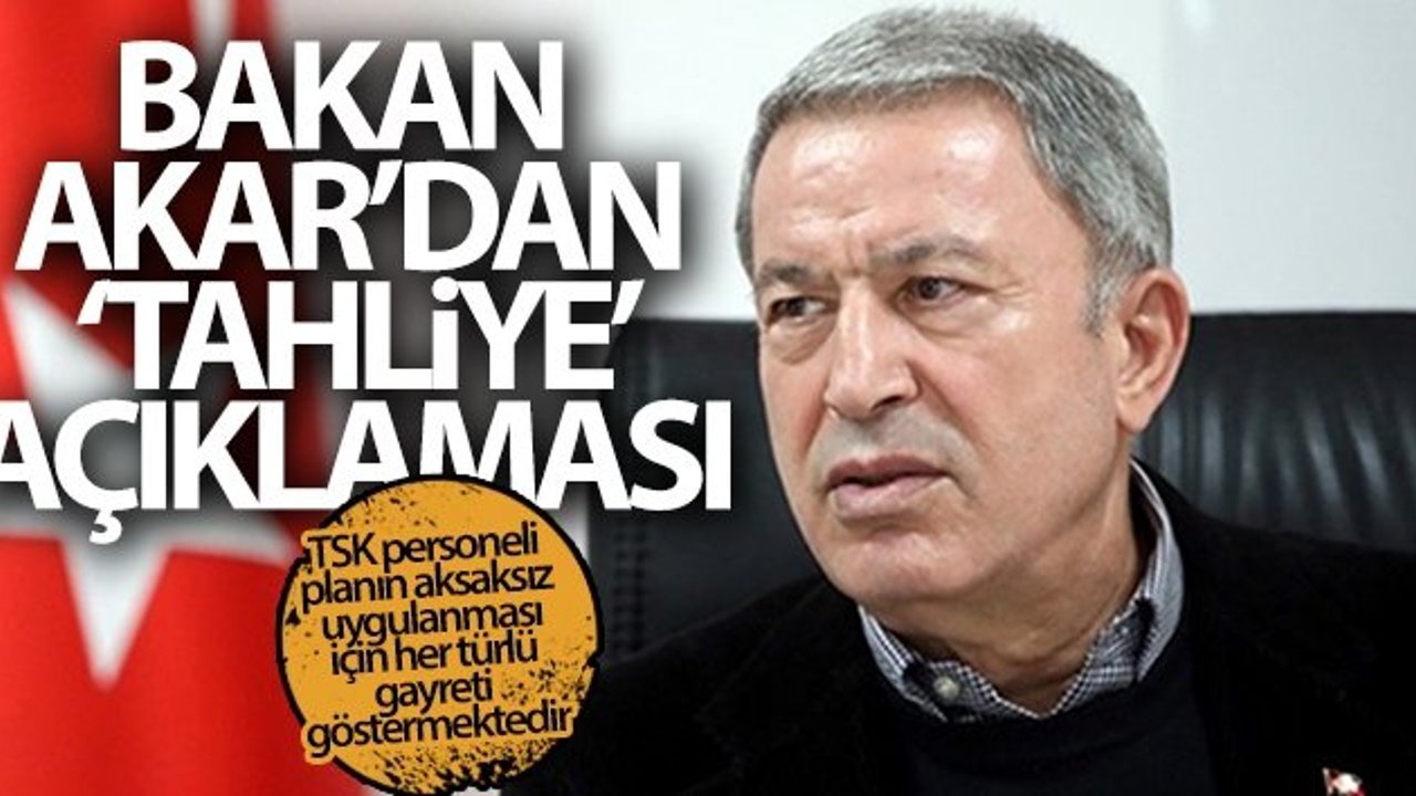Milli Savunma Bakanı Akar, gazetecilerin Türk askerinin Afganistan'dan tahliyesine ilişkin sorularını yanıtladı. Afganistan'da kendisine verilen görevi başarıyla yerine getirmenin gururuyla Mehmetçiğin Afganistan'dan tahliyesine başlandığını dile getiren Bakan Akar, 'Havaalanında olağandışı yoğunluğa ve şartlara rağmen önemli bir aksaklık olmadan TSK personeli planın aksaksız uygulanması için her türlü gayreti göstermektedir. Faaliyetlerimize sağladıkları destekten dolayı dost ve kardeş Pakistan ve Tacikistan ile bölgede beraber çalıştığımız müttefiklerimize teşekkür ediyoruz. Dışişleri Bakanlığı ve ilgili kurumlarla koordineli olarak faaliyetlerimiz mevcut tahliye planlarımız çerçevesinde devam etmektedir' ifadelerini kullandı.