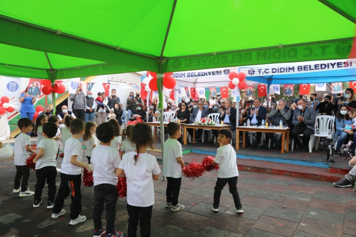 Saygı duruşu ve İstiklal Marşı'nın okunması ile başlayan kutlama programının açılış konuşmasını Didim Belediye Başkanı. A Deniz Atabay gerçekleştirdi. Tüm herkese hoş geldiniz diyerek sözlerine başlayan Başkan Atabay, 'Burada canlı ve içten bir katılım var. Bende kendimi çok mutlu hissediyorum. Bize öğretmenlerimize, üniversite hocalarına herkese, toplumun her kesimine, bu topluma hizmet etmek mecburiyetinde olan herkese Atatürkümüzün yüklediği görevler var. Bizlerde görevimizi en iyi şekilde yapıyoruz. Sizleri ve çocuklarımızı ilgilendirecek çalışmalar yapıyoruz. Deniz Yıldızları Gündüz bakım evimiz çocuklarımız için yapılmış olan kreştir. Bunun bir üstü okuldur. Bir imkanımız olsa böyle bir eğilimimiz var ama yürürlükteki kanunlar şu an bize o imkanı vermediği için yapamıyoruz' dedi.