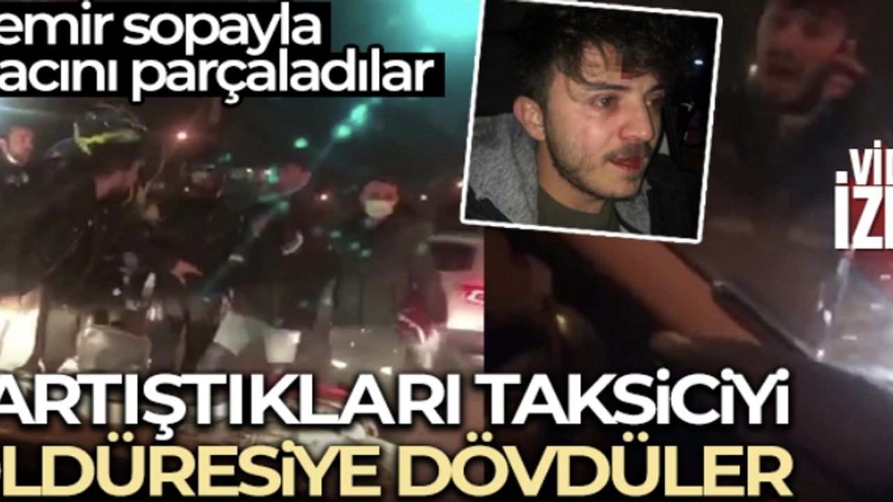 Yumruk yedikten sonra eline aldığı demir sopayla içinde yolcuların bulunduğu taksiye defalarca vuran motokuryenin çağırdığı ağabeyi taksiciyi darp etti.