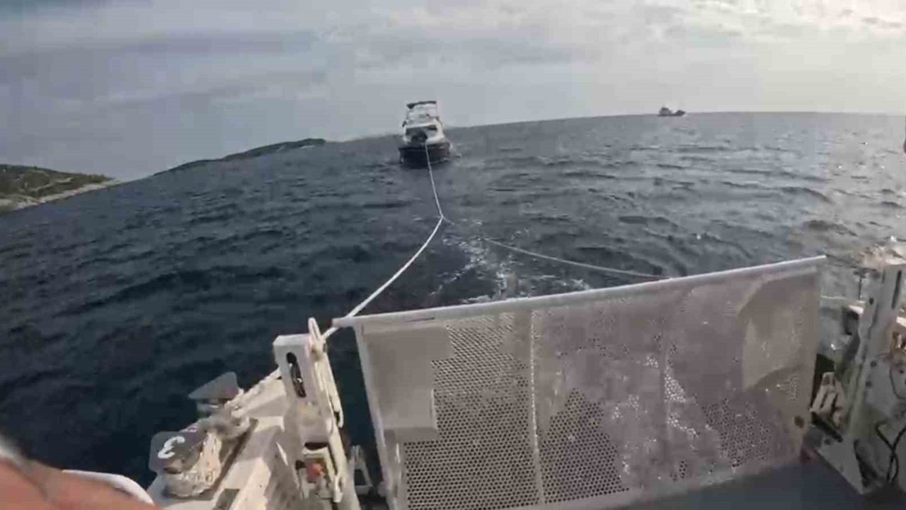 Aydın'ın Kuşadası ilçesinde motor arızası nedeniyle sürüklenen teknedeki iki kişi kurtarıldı.