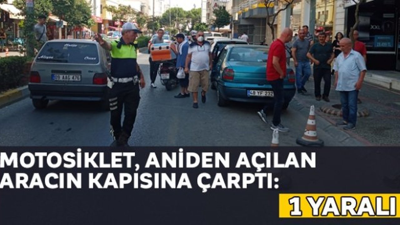 Aydın'ın Efeler ilçesinde park halindeki otomobilin aniden açılan kapısına çarpan moto kurye yaralandı.