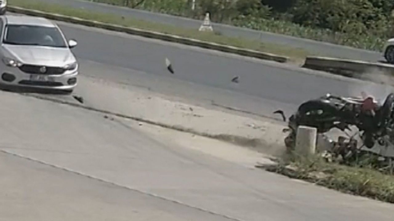 Görüntülerde, sağ şeritte seyir halindeki otomobilin akaryakıt istasyonuna dönmek için sinyal verdiği, aynı istikamette emniyet şeridinde giden motosikletin otomobile çarptığı görüldü.