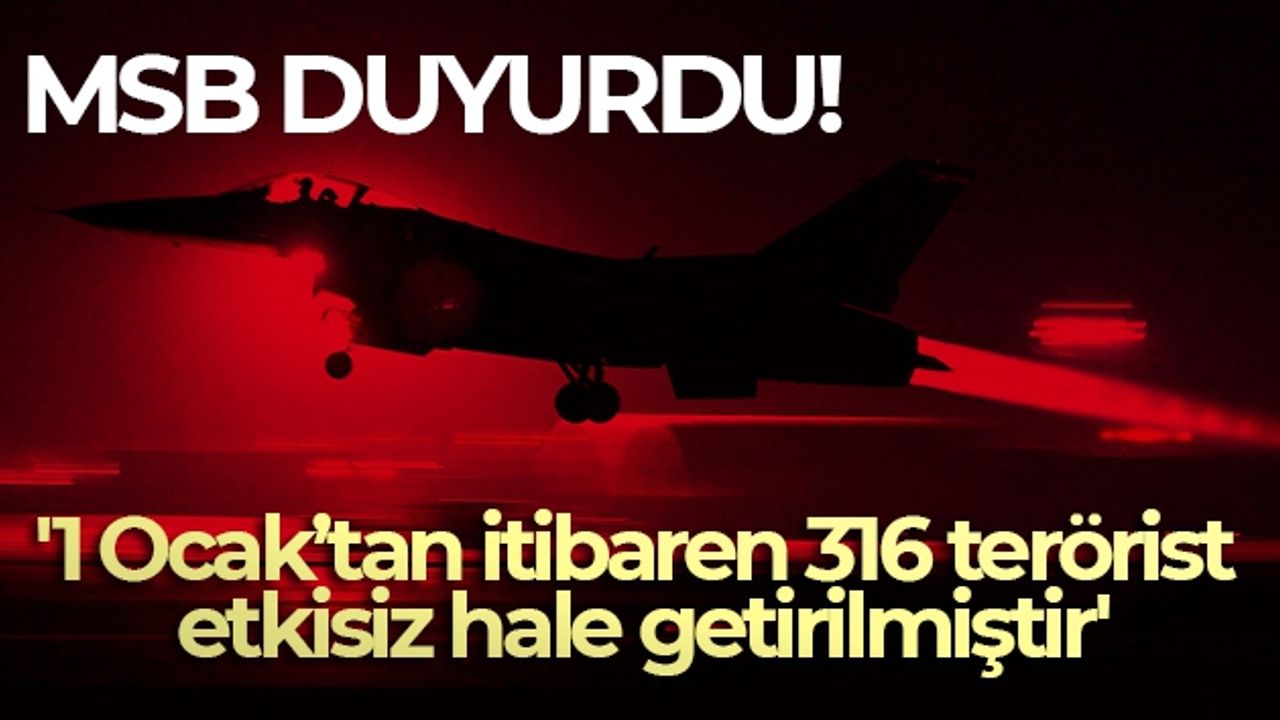 Milli Savunma Bakanlığı, 1 Ocak'tan itibaren 5'i büyük, 13'ü orta çaplı olmak üzere 18 operasyon icra edildiğini ve 316 teröristin etkisiz hale getirildiğini açıkladı. Bakanlık ayrıca, 24 Temmuz 2015'ten bugüne kadar ise Irak ve Suriye'nin kuzeyi dahil toplam 33 bin 584 teröristin etkisiz hale getirildiğini duyurdu.
