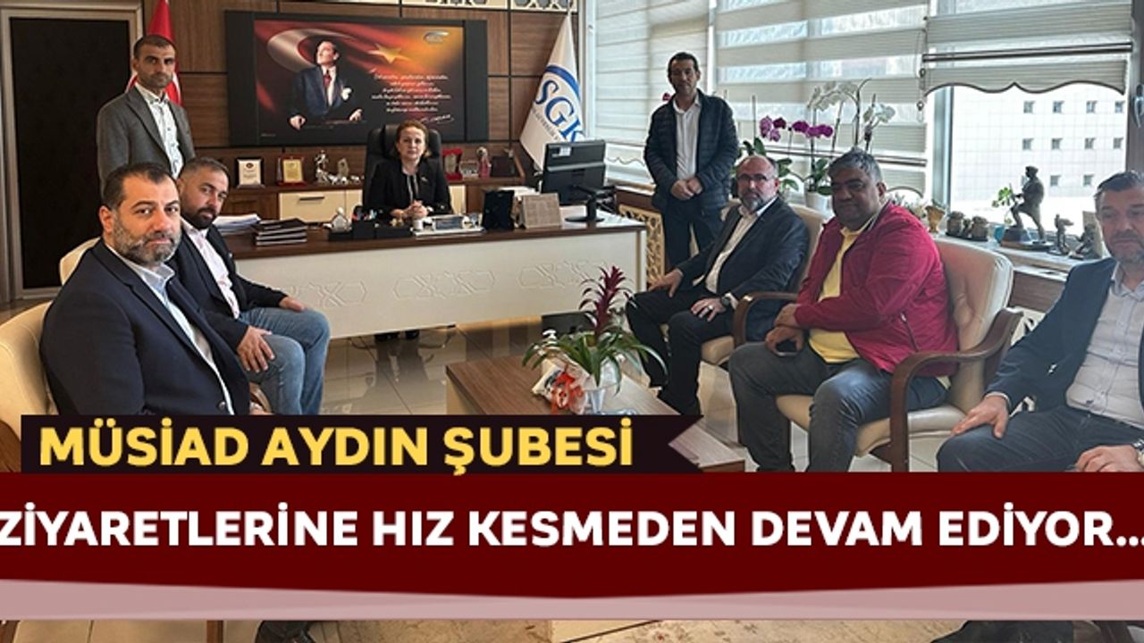 HABER: DOĞUKAN ALKAN - MÜSİAD Aydın Şubesi ziyaretlerine hız kesmeden devam ediyor. Bir ziyaret daha gerçekleştiren MÜSİAD Aydın Şubesi, Aydın Sosyal Güvenlik Kurumu İl Müdürü Zeynep Yılmaz'ı ziyaret etti. Ziyarete Müsiad Aydın Yönetim Kurulu Başkanı Taner Kuşpaz, Eğitim, Kültür, Araştırma, Yayınlar, Bilim ve Teknoloji Planlama Sorumlusu Mehmet Evren Karaköse, Yurtiçi Teşkilatlanma ve Bütçe ve Mali işler Sorumlusu Hüseyin Kaya, Kurumsal İlişkiler ve İletişim Sorumlusu Etem Çetinkaya, Sektör Kurulları, İş Ticaret Geliştirme Sorumlusu Kamuran Uzundal, Yönetim Kurulu Üyesi Ender Çankel ve Yönetim Kurulu Üyesi Ali Özgür Metin, katılım sağladı.