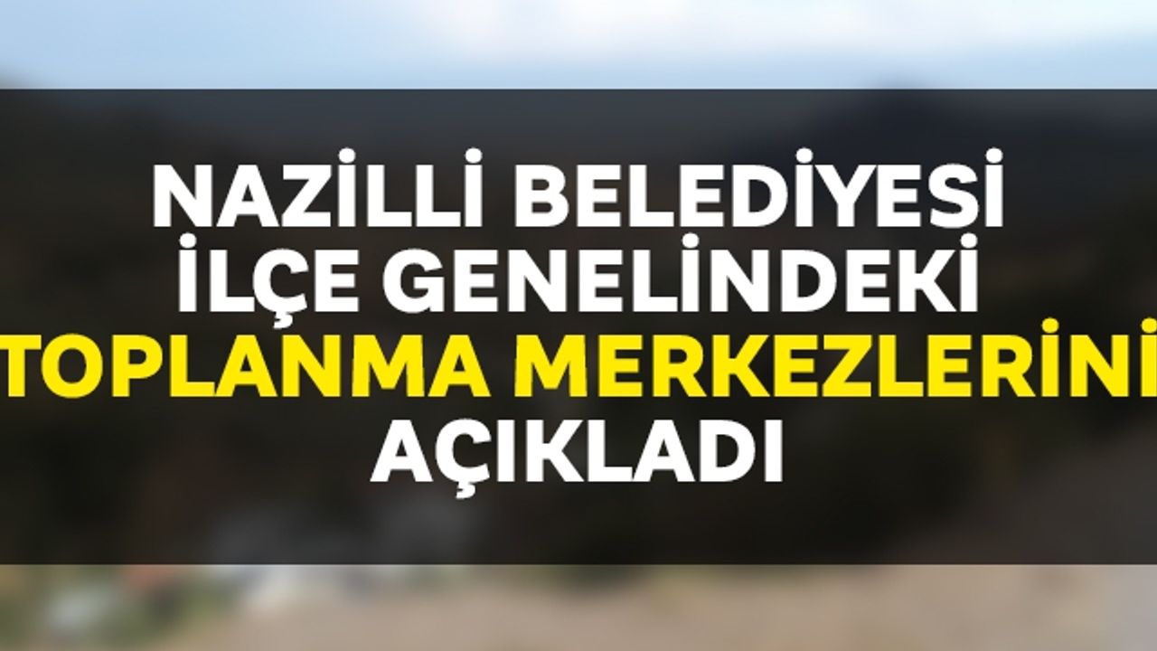 Nazilli Belediyesi, deprem anında ilçe genelindeki toplanma alanlarını da vatandaşlara hatırlatarak ilçe genelindeki toplanma alanalarını; Zafer Mahallesi: Yunus Emre Parkı - 15 Temmuz Parkı, Yeni Mahalle: 23 Nisan Parkı - Atatürk ParkıYıldıztepe Mahallesi: Botanik Parkı, Sümer Mahallesi: Sümer Rekreasyon Alanı, Çapahasan Mahallesi: Şehit Cengiz Toklu Parkı, Altıntaş Mahallesi: Uğur Mumcu Parkı, Pınarbaşı Mahallesi: Şehit Mehmet Koyuncuoğlu Parkı, Cumhuriyet Mahallesi: Karabağ Parkı - Cumhuriyet Parkı, Yeşil Mahalle: Şehitler Parkı - Mustafa Alptuğ Sözen Parkı, Karaçay Mahallesi: Turunç Park, İsabeyli Mahallesi: İsabeyli Parkı, Dallıca Mahallesi: Dallıca Parkı olarak açıklandı.