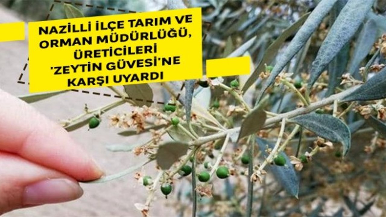 Nazilli İlçe Tarım ve Orman Müdürlüğü'nden yapılan açıklamada, 'İlçe müdürlüğümüz teknik elemanları tarafından yapılan tuzak kontrolleri ve fenolojik gözlemler sonucu zeytin ağaçlarında meyve dökümüne sebep olan 'zeytin güvesi meyve nesline' karşı ilaçlama yapılması gerekmektedir. Zeytinlerde meyve dökümünü engellemek amacı ile meyveler karabiber büyüklüğüne geldiği zaman ruhsatlı ilaçlar ile mücadele edilmesi gerekmektedir. Önemle duyurulur' ifadeleri yer aldı.