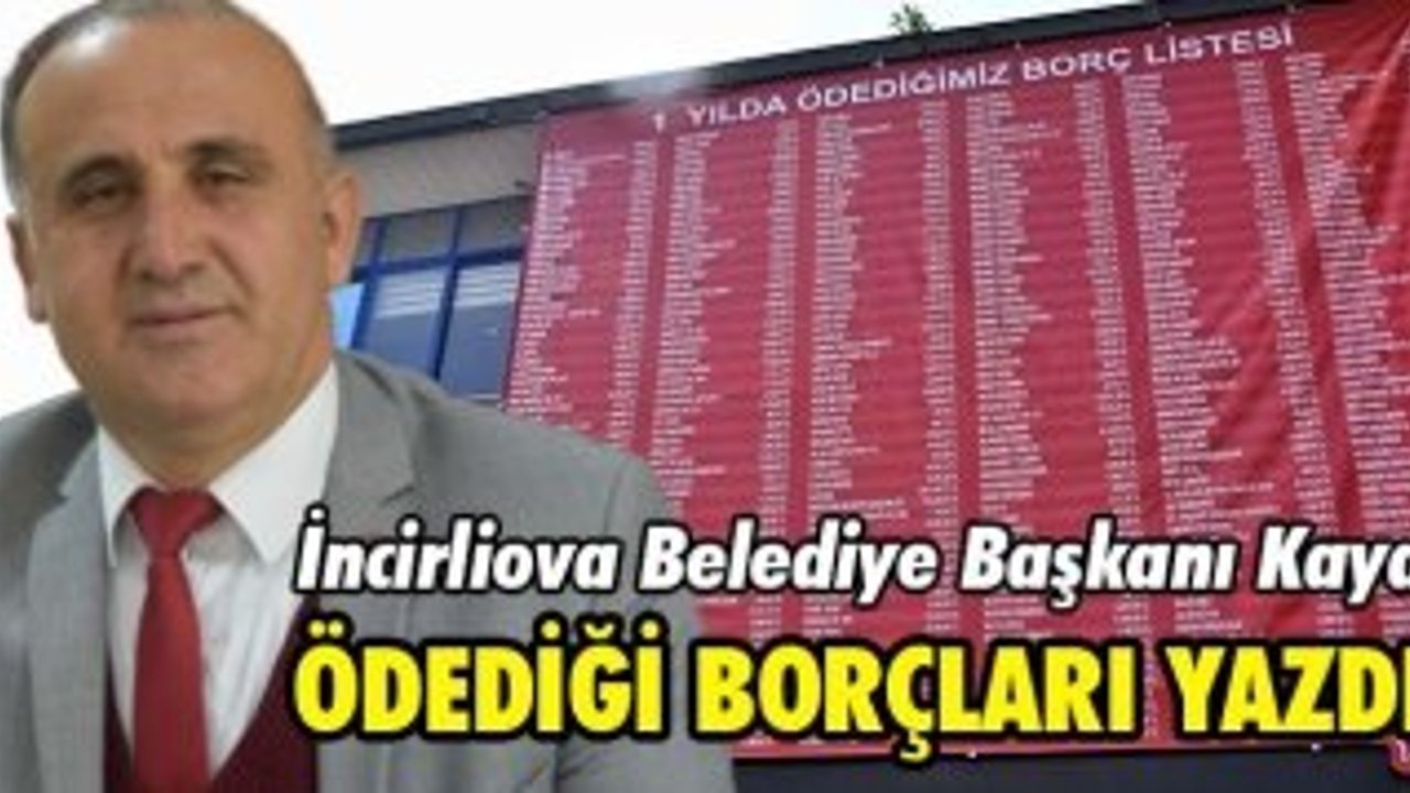 Aydın'ın İncirliova Belediye Başkanı Aytekin Kaya görev yaptığı bir yıllık süreçte ödediği borçları pankart şeklinde yaptırarak hizmet binasının önüne astırdı.