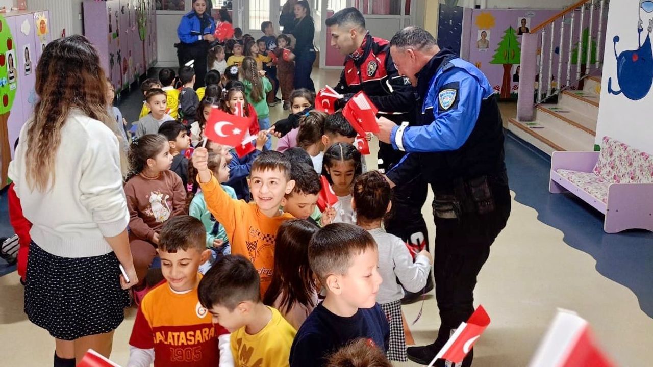 Aydın İl Emniyet Müdürlüğü ekipleri, öğrencilerin güvenlik bilincini artırmak ve moral motivasyonlarına katkı sağlamak amacıyla okul ziyareti gerçekleştirdi. Efeler ilçesinde bulunan İstiklal Anaokulu'nda öğrencilerle buluşan Toplum Destekli Polislik Şube Müdürlüğü ekipleri, emniyet teşkilatının her zaman yanlarında olduğunu hissettirmek amacıyla 'Polis kimdir, ne iş yapar ve genel güvenlik kuralları' konularında öğrencileri bilgilendirdi. Etkinlik boyunca öğrenciler, polislerle sohbet ederek merak ettikleri soruları yöneltme fırsatı buldu. İl Emniyet Müdürlüğü koordinesinde farkındalık çalışmalarının sürdürüleceği öğrenildi.