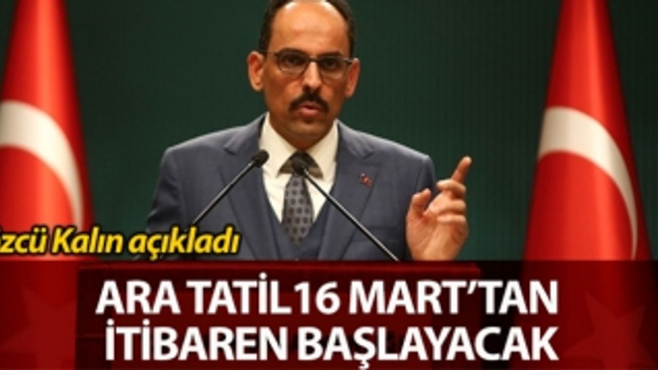 Kalın yaptığı açıklamada, ''Öncelikle ilk orta ve lise okulları 16 Mart tarihinden itibaren 1 hafta tatil edilecek. Dolayısıyla ara tatil önceye alınmış olacaktır. 23 Mart itibarıyla uzaktan eğitim yöntemiyle internet ve televizyon kanallarından öğrencilerimiz eğitim görecektir.'' ifadelerini kullandı.