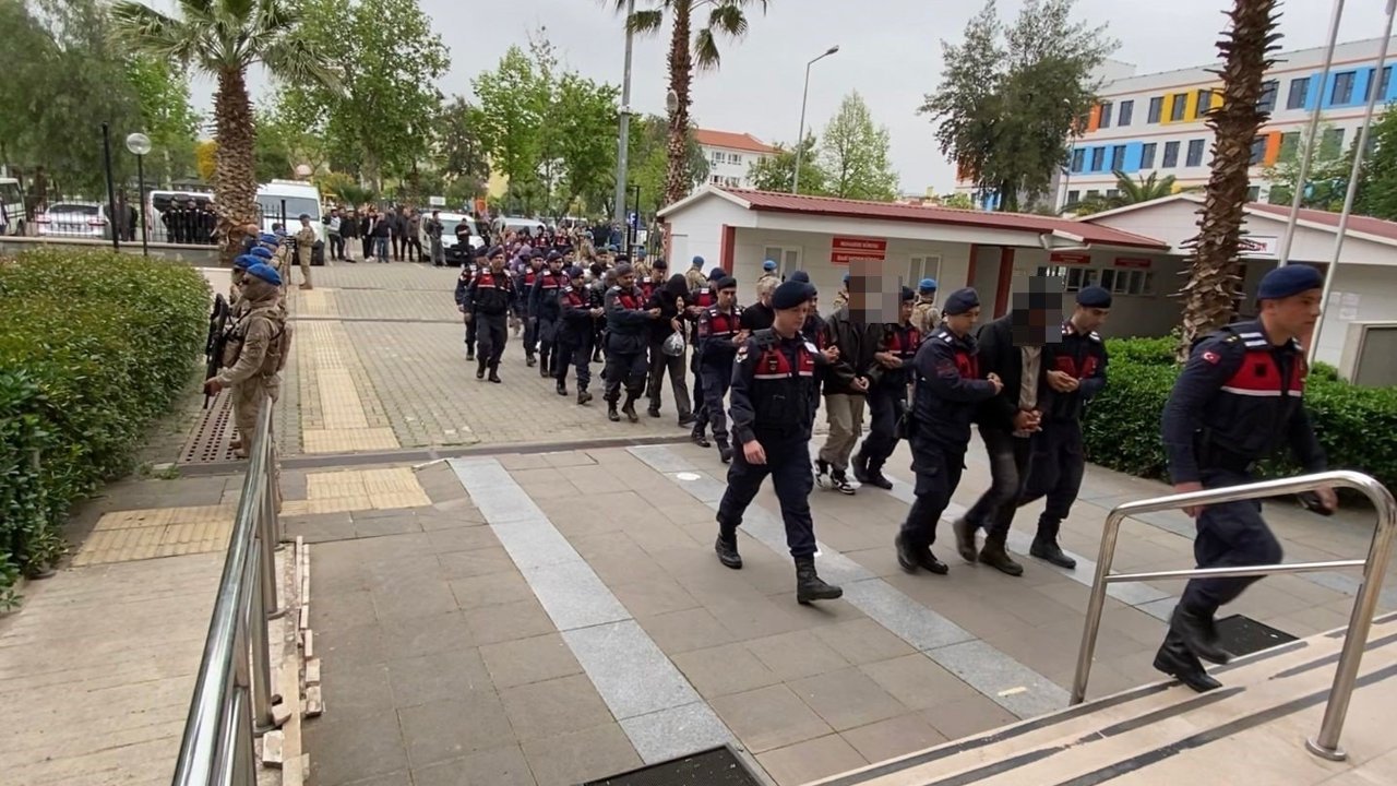 Olayla ilgili olarak gözaltına alınan 17 şüpheli jandarmadaki işlemlerinin ardından yoğun güvenlik önlemleri altında adliyeye sevk edildi.