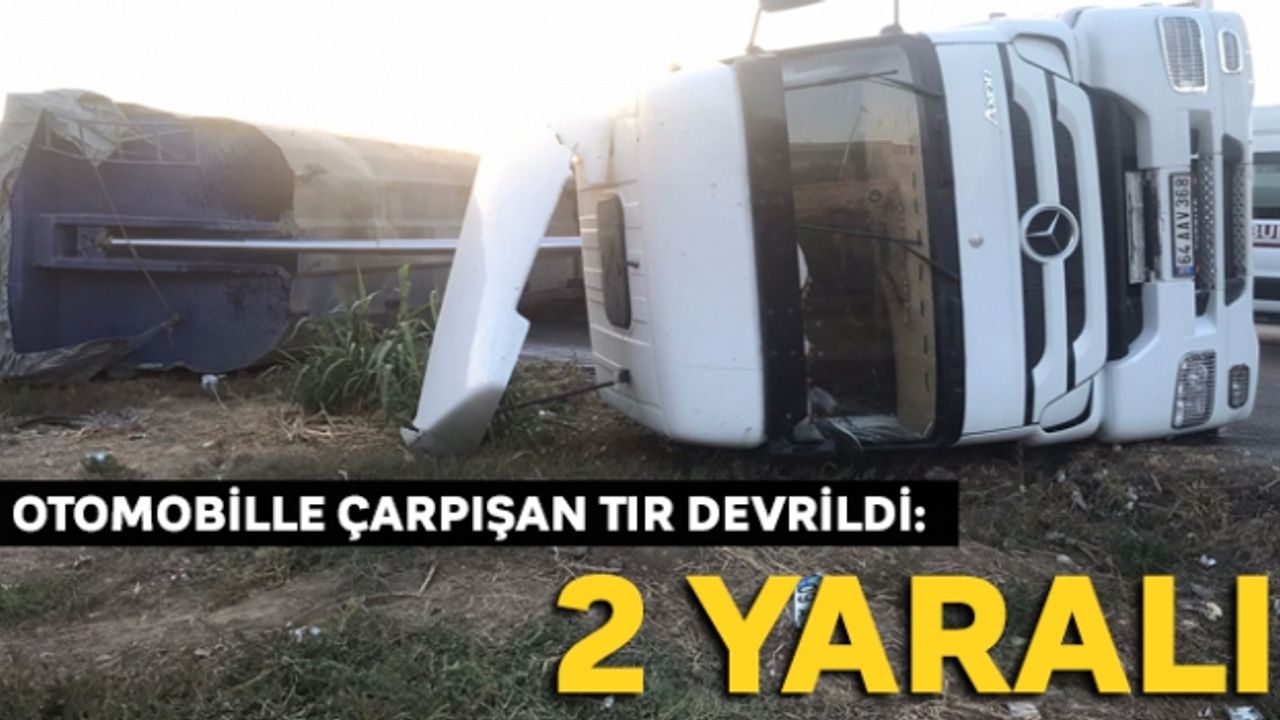 Otomobille çarpışan tır devrildi: 2 yaralı
