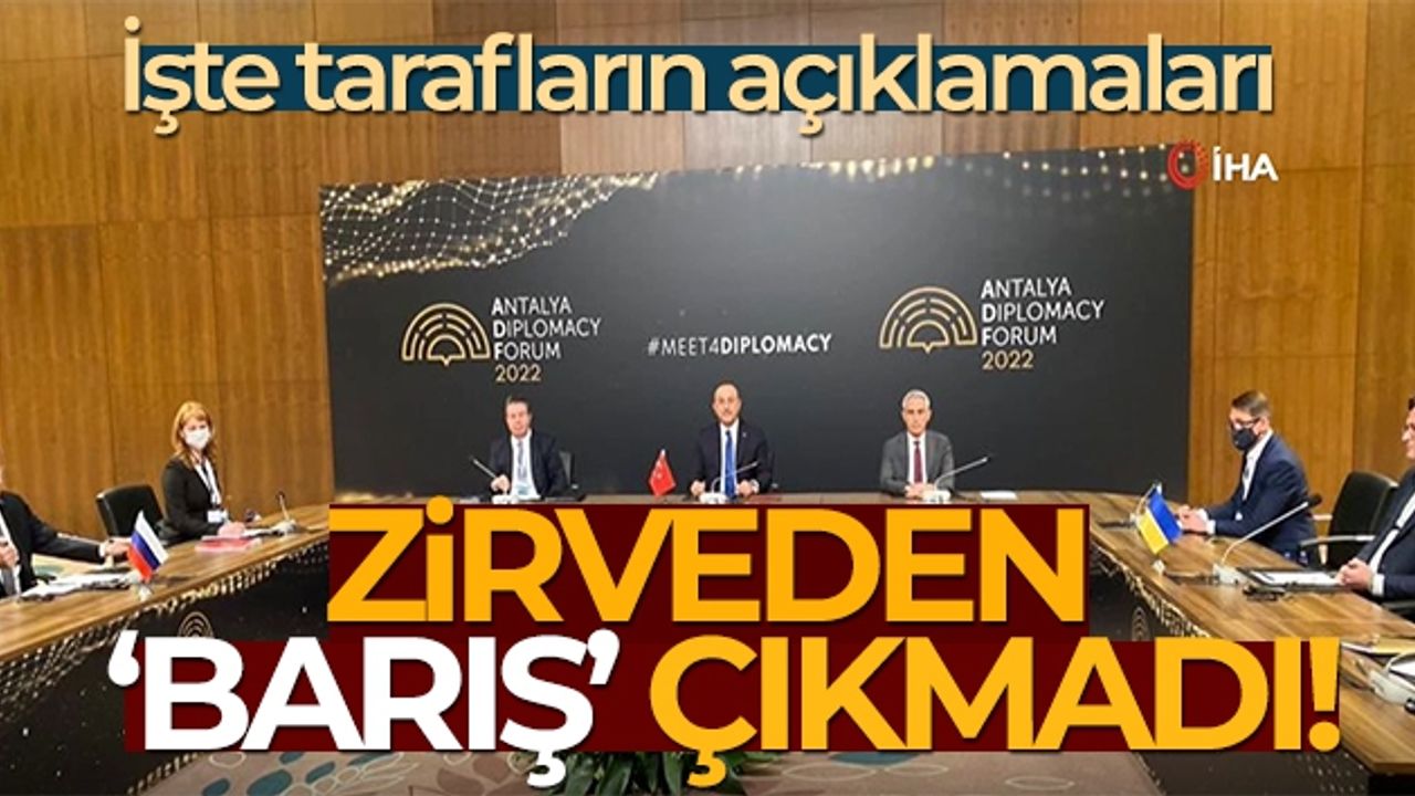 Dışişleri Bakanı Mevlüt Çavuşoğlu ile Rusya Dışişleri Bakanı Sergey Lavrov ve Ukrayna Dışişleri Bakanı Dmitri Kuleba'nın katılımıyla Antalya'da düzenlenen üçlü barış zirvesi sona erdi. Toplantı sonrasında Rusya Dışişleri Bakanı Sergey Lavrov ve Ukrayna Dışişleri Bakanı Dmitri Kuleba, ayrı ayrı salonlarda aynı anda kameraların karşısına geçti. İki bakanın basın açıklaması çok sayıda yerli ve yabancı basın mensubu tarafından takip edildi.