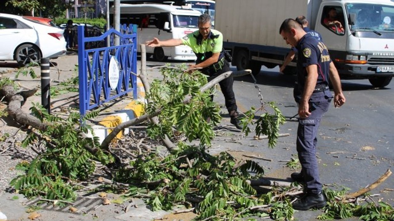 Koparak yola savrulan ağaç dallarını temizleyen itfaiye ve trafik ekipleri trafik güvenliğini sağlarken, bölgeye sevk edilen Aydın Büyükşehir Belediyesi personeli kopan ağaç dallarını testere ile keserek topladı.