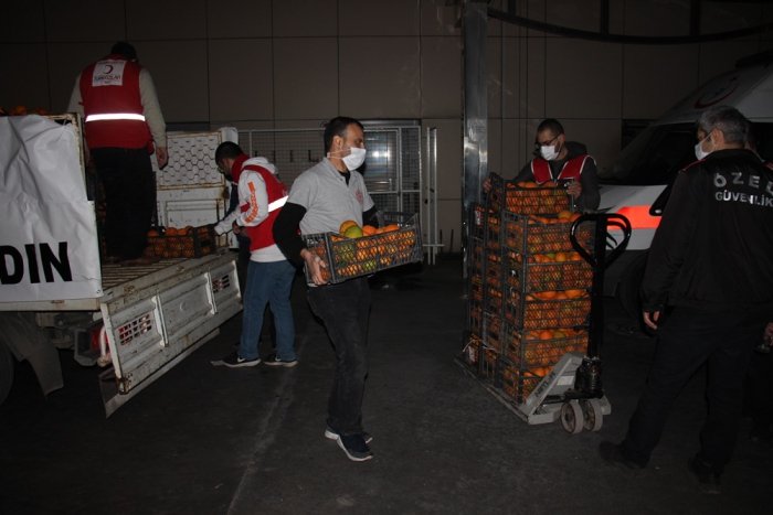 Aydın'da portakal üreticileri tarafından bağışlanan 250 kasa portakal, Türk Kızılay Aydın İl Başkanlığı gönüllüleri tarafından toplanarak sağlık çalışanlarına dağıtıldı.