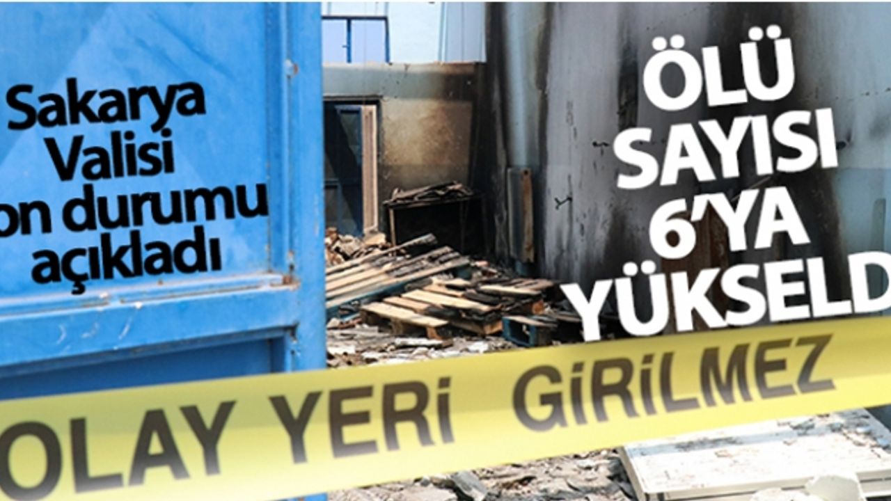 Sakarya Valisi Çetin Oktay Kaldırım, Hendek'te havai fişek fabrikasında meydana gelen patlamada 2 cansız bedene daha ulaşıldığını, ölü sayısının 6'ya yükseldiğini söyledi.