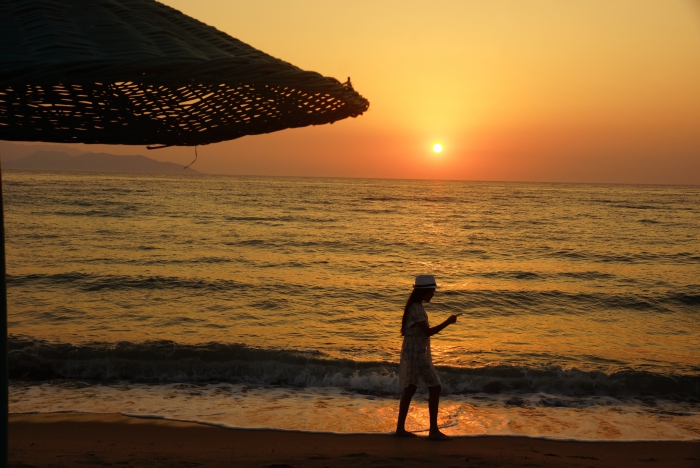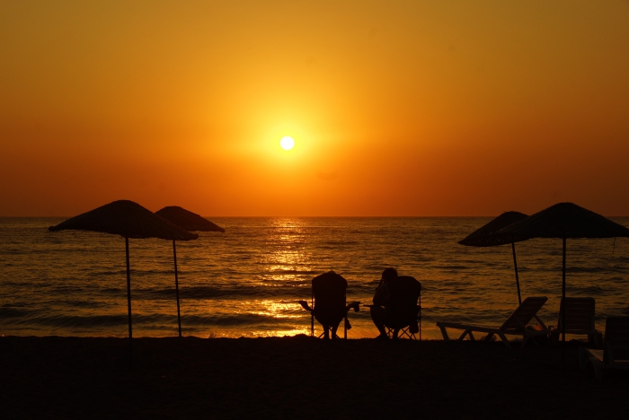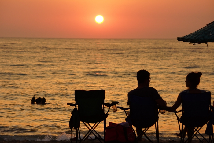 Gün batımında sahile gelen vatandaşlar cep telefonları ile gün batımını görüntülerken, plaja sandalyeleri ile gelen vatandaşlar ise 1 saatlik görsel şöleni sevdikleri ile beraber izleme şansı buluyor.