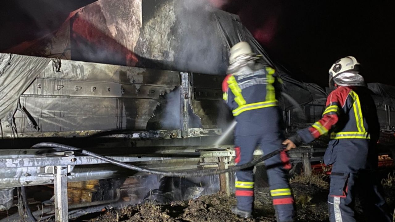 AYDIN (İHA) - Yangın, Efeler ilçesi otoban gişeleri Kızılcaköy mevkiinde meydana geldi. Edinilen bilgiye göre 16 SJ 540 plakalı mermer blok yüklü bir tırın dorsesinde, seyir halindeyken yangın çıktı. Yangını fark eden tır sürücüsü aracı, yolun sağına çekerek durumu 112 Acil Çağrı Merkezi'ne bildirdi. İhbar üzerine bölgeye itfaiye ekipleri sevk edildi. Kısa sürede bölgeye gelen ekipler, alevler içinde kalan tırın dorsesindeki yangını söndürdü. Ekipleri müdahalesiyle yangın kontrol altına alınırken, dorse kullanılamaz hale geldi. Soğutma çalışmalarının ardından yangının çıkış nedeni ile ilgili inceleme başlatıldı.