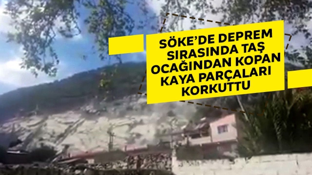 Deprem anında Söke ilçesinde bulunan bir taş ocağında kayaların kopması koku dolu anların yaşanmasına neden oldu. Koparak yuvarlanan kaya parçaları anbean görüntülendi.