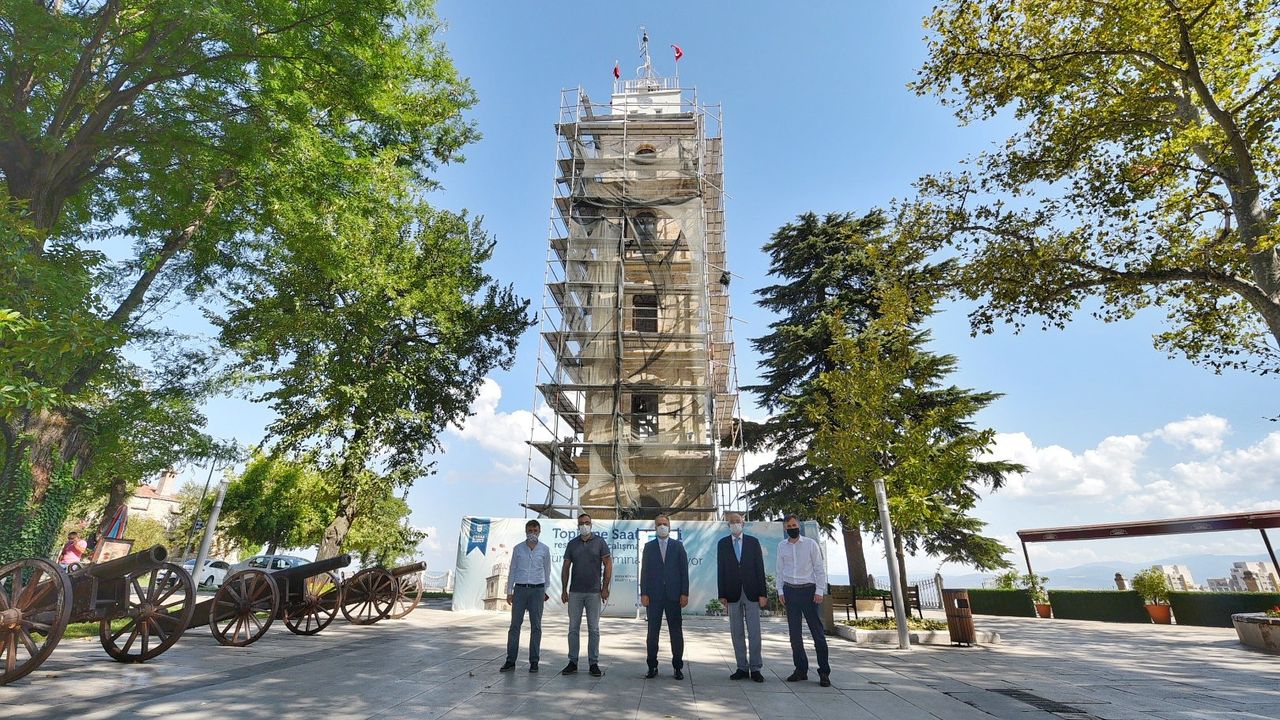 Tüm Saatçi İşadamları Derneği (Tüsad) Başkanı ve Pırlant Saatçilik Yönetim Kurulu Başkanı Hayrettin Akpınar ile birlikte Tophane Saat Kulesi'nde yürütülen çalışmaları yerinde inceleyen Büyükşehir Belediye Başkanı Alinur Aktaş, çalışmalar hakkında bilgi aldı. Saat Kulesi'nin yan tarafına yerleştirilmesi düşünülen 2 metrelik saat mekanizması hakkında fikir alışverişinde bulunan Başkan Aktaş, tarih ve kültür şehri olan Bursa'da Osmanlı'ya dair birçok eserin bulunduğunu söyledi. Tüsad Başkanı Hayrettin Akpınar'a ilgisi ve desteklerinden ötürü teşekkür eden Başkan Aktaş, Tophane Saat Kulesi'ndeki restorasyonun ay sonu itibariyle biteceğini açıkladı. Özellikli saat mekanizmasının daha iyi teşhir edilmesi amacıyla hazırlanan çalışmayı da yerinde tespit ettiklerini anlatan Başkan Aktaş, 'İlk olarak Abdülaziz döneminde yaptırılan Saat Kulesi, bugünkü formuna Abdülhamit döneminde kavuştu. 1800'lerde kagir olarak inşa edilmiş ve lodosun şiddetine dayanamayarak yıkılmış. 2019 yılından bu yana Büyükşehir Belediyesi tarafından yürütülen çalışmalar var. Bitirilen iyileştirmelerin yanında zarar gören ahşapların tadilatı yapıldı. Kullanılamayacak durumda olanlar değiştirildi. Ahşap pencereler zımparalandı ve boyandı. Her türlü çelik elemanlara antipas sürüldü ve boyandı. Sandviç panellerle kaplı son kat kompozit duvarla değiştirildi, sıvandı ve boyandı. Bu ay sonu itibarıyla da çalışmalar tamamlanacak' dedi.