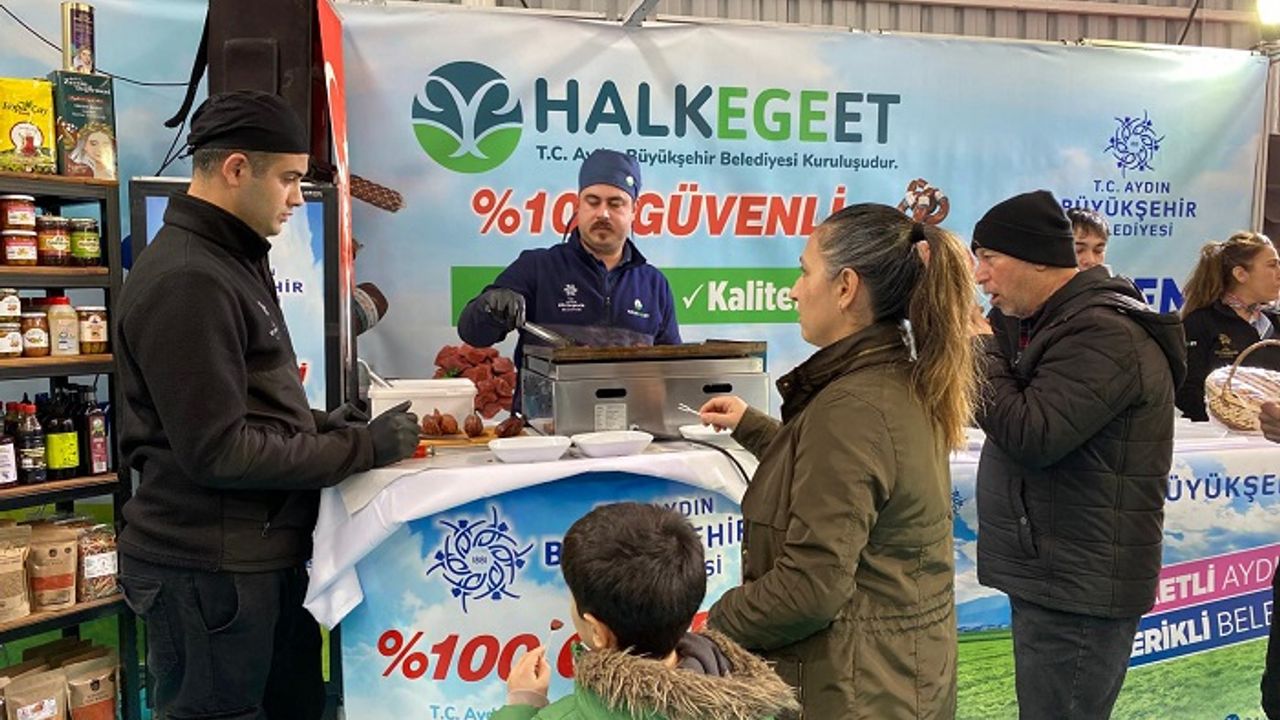 Fuarda Büyükşehir Belediyesi standını ziyaret eden katılımcılara Aydın’a özgü lezzetlerin ikramı yapıldı, Halk Ege Et ürünlerinin tanıtımı gerçekleştirildi. Zeytin, zeytinyağı ve kuru incir gibi yöresel lezzetlerin ikramı yapılırken aynı zamanda Halk Ege Et tarafından üretilen sucuğun tadımı da gerçekleştirildi.