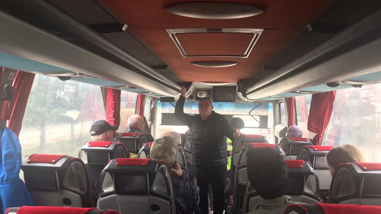 Denetim yapılan otobüs kontrol noktasında durdurularak araçta yolculuk yapan sivil kıyafetli jandarma personeli yolculara kendisini tanıttıktan sonra uyarılarda bulundu. Otobüs sürücüsüne seyir halindeyken cep telefonu kullandığı için 427 lira para cezası kesildiğini belirten jandarma personeli, yolcuları da emniyet kemeri takmaları konusunda uyardı.