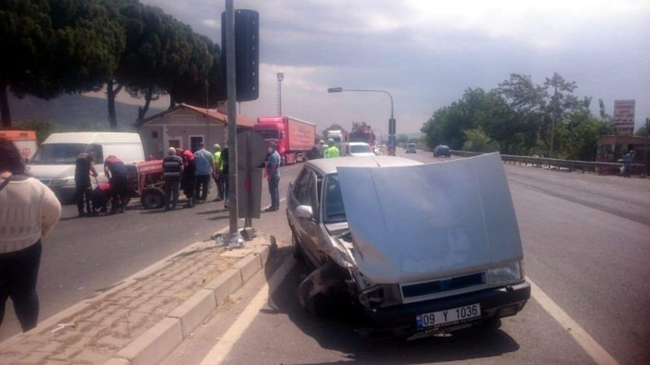 Kaza, Nazilli-Denizli Karayolu üzerinde Hamzallı Mahallesi ile Beşeylül Mahallesi arasındaki ışıklı kavşakta saat 11.30 sıralarında meydana geldi. Edinilen bilgiye göre, 09 PC 923 plakalı traktör sürücüsü İ.A. ile A.A´nın kullandığı 09 Y 1036 plakalı otomobil kavşakta çarpıştı. Kazanın ardından otomobilde bulunan 2 kişi ile traktör sürücüsü İ.A yaralandı. Vatandaşların ihbarı üzerine kaza yerine gelen 112 Acil Sağlık ekipleri, yaralıları Nazilli Devlet Hastanesi´ne kaldırdı. Kazada ağır hasar gören her iki araç trafik ekipleri ve İtfaiye ekiplerinin çalışmasının ardından olay yerinden kaldırıldı.