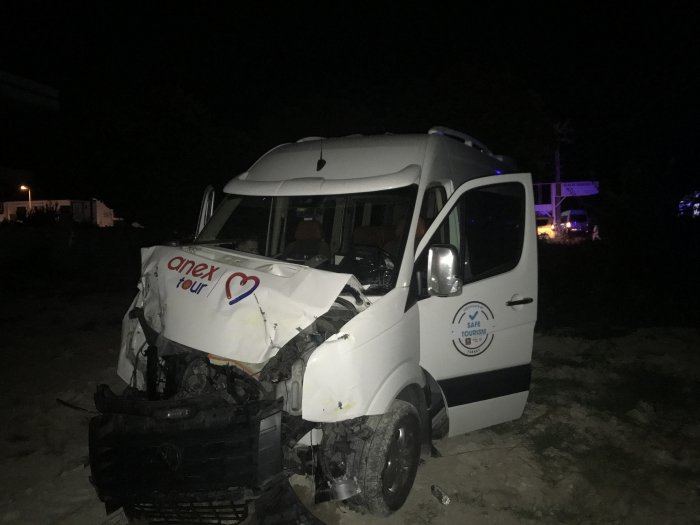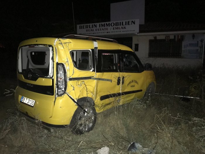 Kazada 2 turist hafif yaralandı. Kaza, Davutlar yolu Anadolu Bankacılar Sitesi önünde saat 05.00 sıralarında meydana geldi. Edinilen bilgiye göre, Davutlar istikametinden Kuşadası istikametine seyir halinde olan Orhan K. yönetimindeki 35 KF 4780 plakalı tur minibüsü, Orhangazi Caddesi'nden Davutlar Yoluna çıkmak isteyen Dursun K. (22) yönetimindeki 09 T 3136 plakalı taksi ile kavşakta çarpıştı. Kazada tur minibüsü yol kenarında bulunan tarlaya uçtu. Kaza yerine çok sayıda 112 acil sağlık ekipleri sevk edildi.