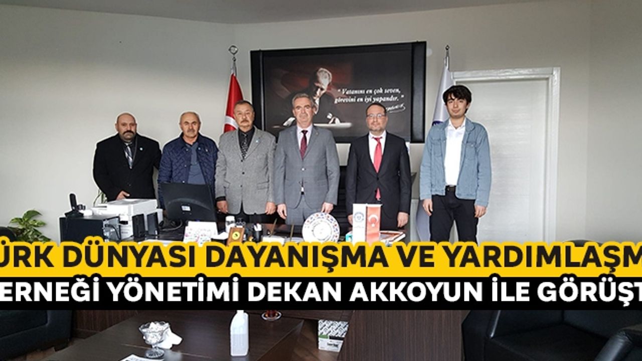 Türk Dünyası Dayanışma ve Yardımlaşma Derneği Aydın İl Başkanı Rıza Karaymir ile yönetim kurulu üyeleri Hasan Kurt ve Müslüm Çakır ADÜ Söke İşletme Fakültesi Dekanı Prof. Dr. Turan Akkoyun'u ziyaret etti. Ziyarette Aydın ve Söke özelinde Türkiye ve Türk Dünyası genelinde fikri ve bilimsel değerlendirilmelerde bulunuldu. Türk Dünyasının Sesi Dergisi'ni takdim eden dernek yöneticilerine proje kitap hediye eden Söke İşletme Fakültesi Dekanı Prof. Dr. Turan Akkoyun, Aydın ve Söke'nin Türk dünyasının sıklet noktalarından olduğunu Timur, Fatih Sultan Mehmet, Kanuni Sultan Süleyman ve Gazi Mustafa Kemal Atatürk ve daha birçok Türk büyüklerinin coğrafyamızla yakından bağının bulunduğunu bu hususların aktarılmasında sivil toplum kuruluşlarının yapıcı ve kuvvetlendirici misyon üstlendiklerini, böylelikle evrensel bir değere ulaşılabileceğini dile getirdi.