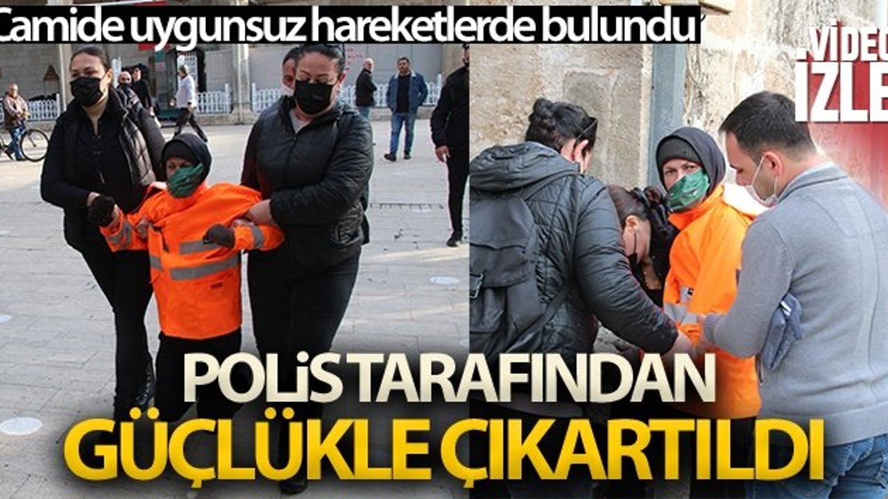 Camiye gelen polis kadının camiden dışarı çıkmasını istedi. Polisi dikkate almayan kadın, camideki uygunsuz hareketlerine devam etti. Kadın bölümünün önündeki ayakkabılığın önüne çöken kadın, kadın polisler tarafından koluna girilerek camiden çıkartıldı. Rus uyruklu kadın sağlık kontrolünün ardından polis merkezine götürüldü.
