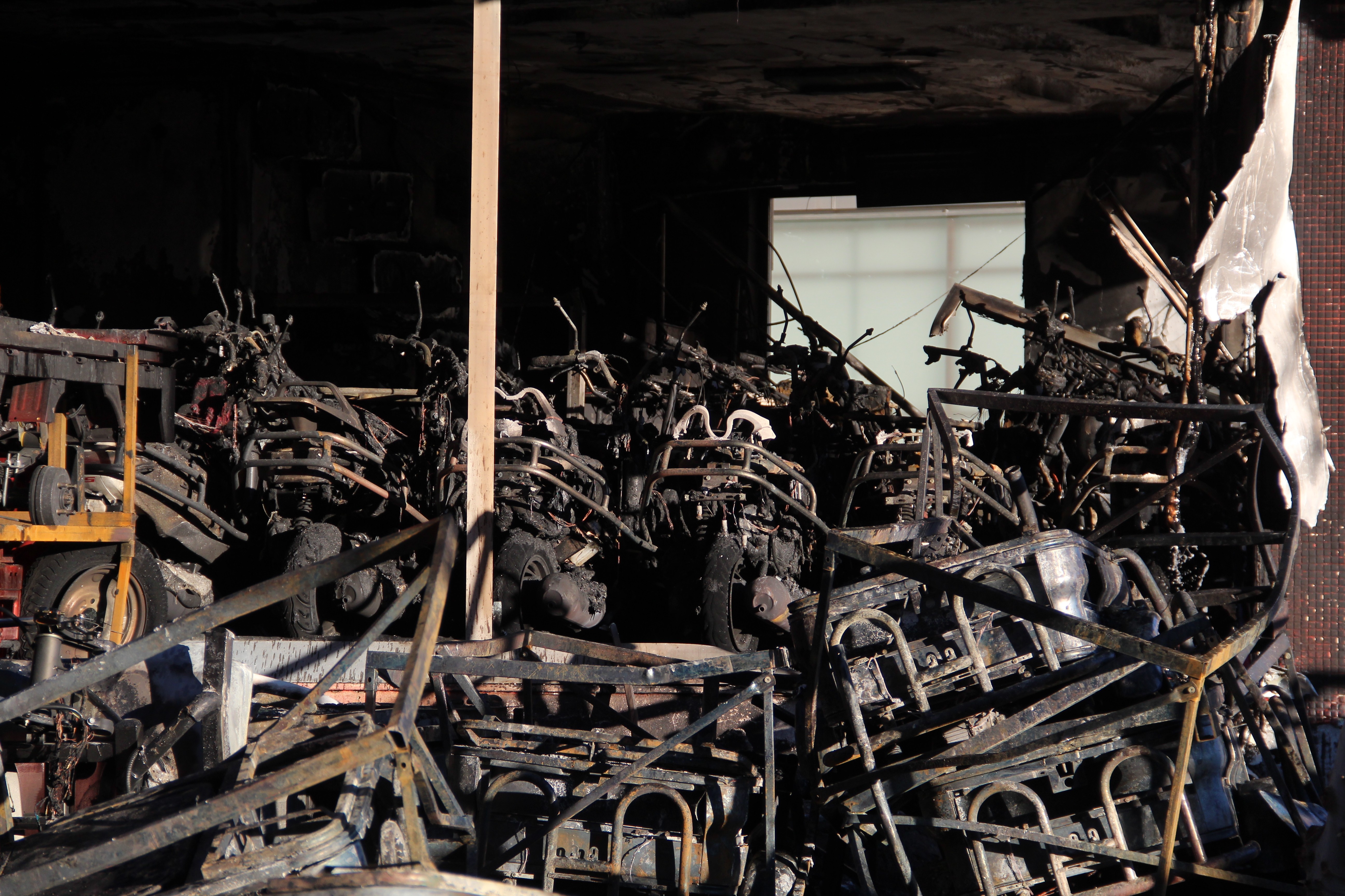 Sabahın ilk ışıklarıyla birlikte felaketin boyutu da ortaya çıktı. İki katlı iş yerindeki tüm motosikletlerin yandığı ve çıkan siyah dumanların üst katları da etkilediği görüldü. Olay yeri inceleme ekipleri iş yerinde içinde ve çevresinde detaylı inceleme yaptı. Satışın yanında tamirde yapılan iş yerinde sadece 5 motosikletin kurtarılabildiği görüldü.