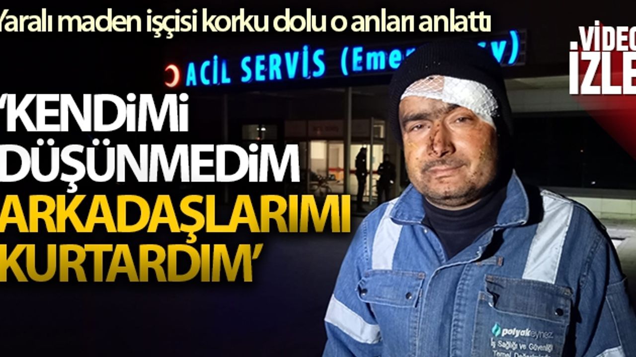 Patlama esnasında yaralanan ve yaşadığı o korku dolu anları anlatan maden işçisi yaralı Engin Kılıç (43), 'Hiçbir şey anlayamadık, saniyelik bir olaydı ve bir anda patlama sesi geldi. Ondan sonra arkadaşlara yardımcı olduk. Çıkarabileceğimiz kadarını çıkardık. Sonra fark ettim ki bende yaralıyım. Onlarla beraber kendimizi dışarı attık. Önceliğim arkadaşlarımdı. Ben ilk başta yaralandığımı fark etmemiştim. Arkadaşlarım yaralı olduğu için onların yardımına koşturdum daha sonra kendimde de yaraların olduğunu fark ettim ancak durumu benden daha kötü olanlar vardı, onlara yardım etmeyi tercih ettim. 15 dakika içerisinde dışarı çıktık. Diğer arkadaşlar da yanık dereceleri biraz daha fazlaydı. Benim kaşımda bir yarılma meydana geldi dikiş attılar. Yüzümde patlamanın etkisiyle yanıklar oluştu. Buna şükür diyoruz. Çok şükür can kaybımız yok' dedi.