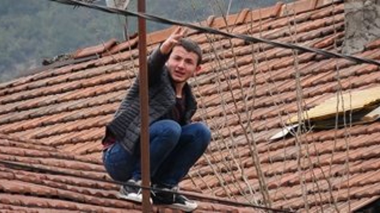 Karabük'te komşusuna yardım için çatıya çıkan 20 yaşındaki genç, çatıdan inemeyince itfaiye tarafından indirildi.