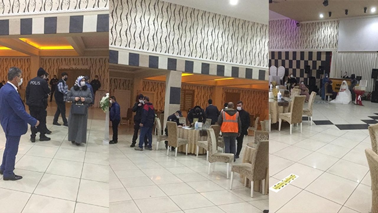 Ekipler hem düğüne katılan misafirleri, hem de düğün sahiplerini konuyla ilgili bilgilendirerek İçişleri Bakanlığı tarafından yayınlanan genelgeyle düğünlerin yasaklandığını, sadece nikah kıyılabileceğini anlattı. Polis, aralarında gelin ve damat ile salon işletmecisinin de bulunduğu 25 kişiye 3 bin 150'şer liradan toplam 78 bin 750 TL para cezası kesti.
