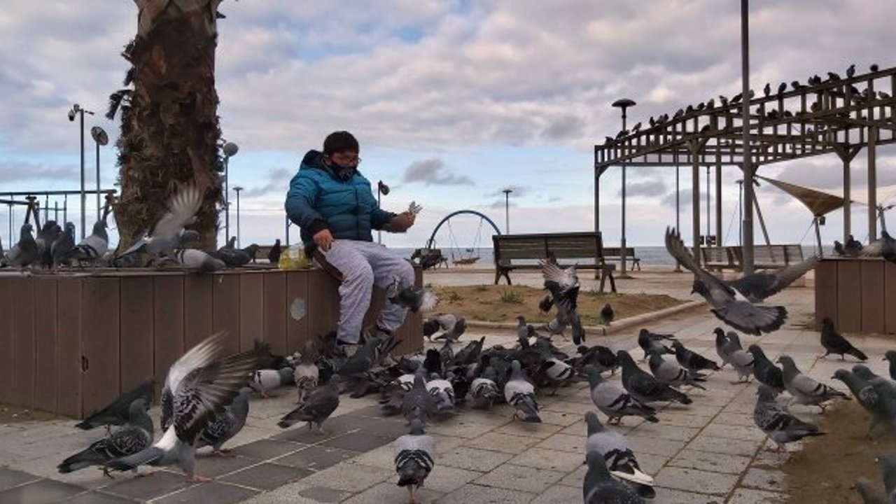 Karasu'da yaşayan küçük hayvansever Yiğit Seyit Günday, sokağa çıkma kısıtlaması nedeniyle kuşlara kimsenin yem vermediğini görünce duyarsız kalamadı. Evinin karşısında bulunan Sahilpark'a giden Yiğit, evindeki kuşlara verdiği yemleri güvercinlere paylaştırdı. Soğuğa aldırış etmeden Sahilpark'ta uzun süre kuşlara yem veren Günday, güvercinleri dakikalarca avucunda besledi. Kuşlara hafta içi de sokağa çıkma izni sırasında sürekli yem verdiğini söyleyen küçük hayvansever, 'Artık beni ve sesimi tanıyorlar. Çağırıyorum, aynı yere geliyorlar' dedi.