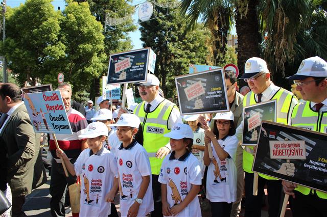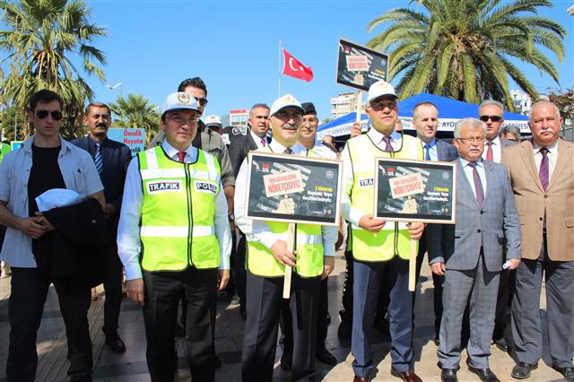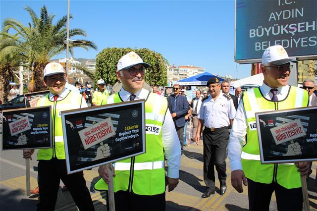 Aydın Atatürk Kent meydanında düzenlenen etkinliğe Aydın valisi Yavuz Selim Köşger, Efeler Kaymakamı Cemal Şahin ,Aydın il Emniyet Müdürü Mehmet Suat Ekici, İl Jandarma Komutanı Mesut İnan, Aydın Büyükşehir Belediye başkanlığı yetkilileri, Aydın şoförler odası başkanı Semih Özmeriç, Efeler özel halk otobüsleri kooperatifi başkanı Okan Yalçın katılırken Cumhuriyet ilkokulu öğrencileri de etkinlikte yer aldı. Etkinliğe katılanlar görevli polis memurları tarafından bilgilendirildikten sonra yaya geçitlerinden nasıl geçileceği uygulamalı olarak yapıldı.