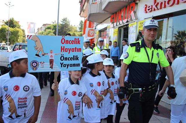 Trafikte yaya önceliğine dikkat çekmek amacıyla ülke genelinde eş zamanlı olarak düzenlenen ve 200 bin polisin katılımı ile düzenlenen 'YAYA GÜVENLİĞİNİN NÖBETÇİSİYİZ' isimli etkinlik Aydın'da da gerçekleştirildi.