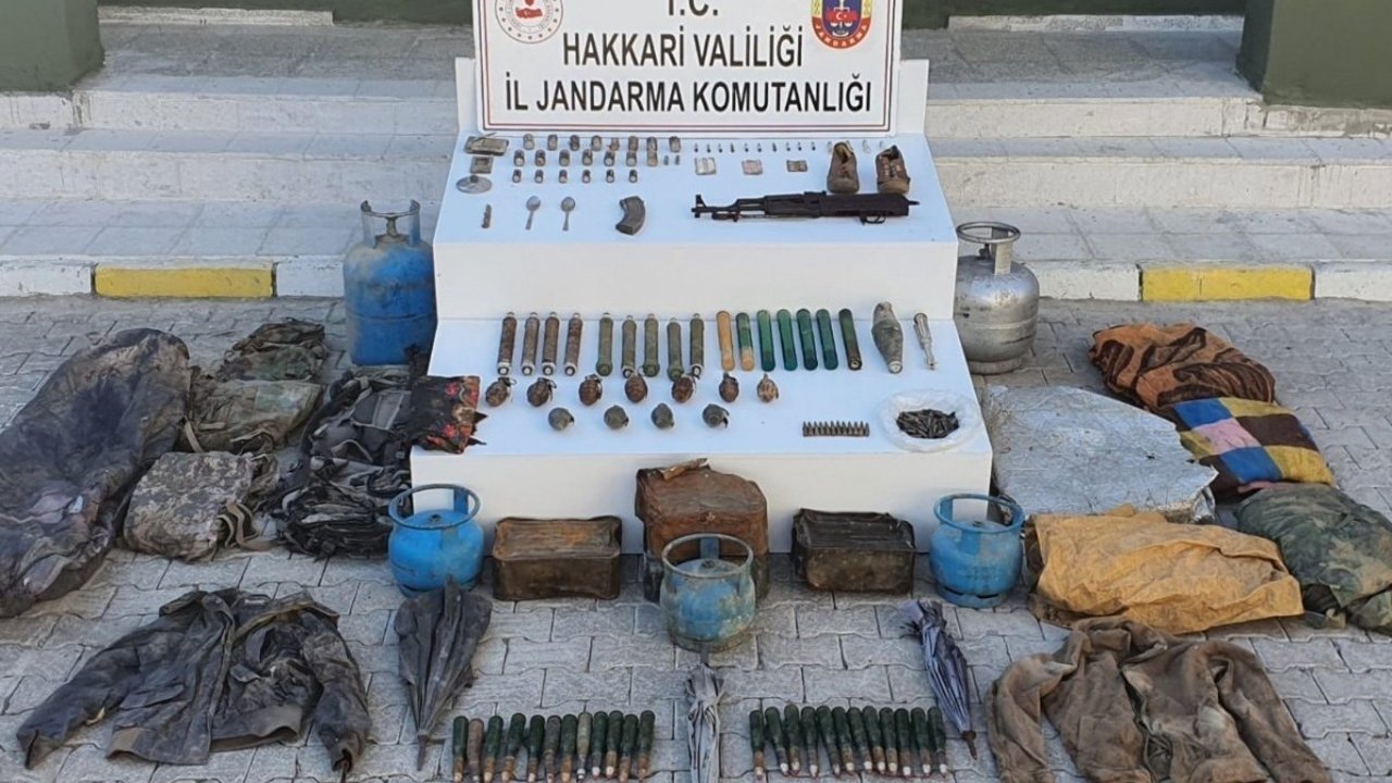Açıklamada, 'Yüksekova ilçesi kırsal alanında icra edilen operasyon kapsamında mağara içerisinde; 1 adet AK-47 Kaleşnikof piyade tüfeği, 11 adet savunma tipi el bombası, 9 adet roketatar mühimmatı, 7 adet roketatar sevk fişeği, 1 adet patlamış RPG-7 mühimmatı, 136 adet Doçka mühimmatı, 12 adet PKM Bixi tüfeği mühimmatı, 70 adet AK-47 Kaleşnikof piyade tüfeği mühimmatı, 1 adet AK-47 Kaleşnikof piyade tüfeği şarjörü, 2 adet büyük tüp, 3 adet küçük tüp, 23 adet pil, 1 çift ayakkabı, 5 adet çanta, 2 adet battaniye, 1 adet uyku tulumu, 1 adet 3x4 metre sarı renk branda, 10 adet lokal anestezik ampul, 4 adet enjektör, 38 adet muhtelif hap, 1 adet radyo, 1 adet ısı yalıtımlı folyo branda, muhtelif yaşam ve giyim malzemesi ele geçirilmiştir. Bölgede operasyonlar devam etmektedir' denildi.