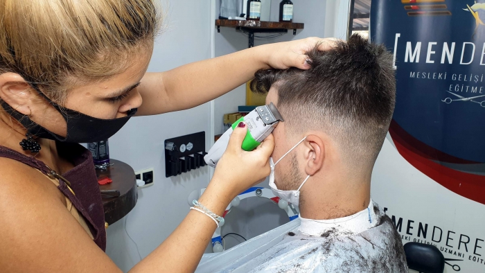 Özel salon eğitimi aldıkları için çok mutlu olduğunu ifade eden Nazillili Berber Esra Çınar; '2 günlük özel salon eğitimine geldim. Çok güzel, dolu dolu bir eğitim geçirdik. Kafa ve yüz anatomisine göre saç kesmeyi öğrendim. Bundan sonra kişiye özel saç kesimlerine devam edeceğim' dedi.