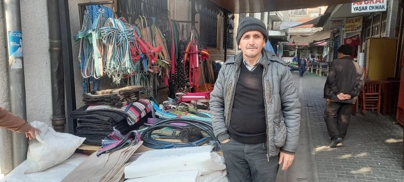 Aydın'da uzun yıllardır yük hayvanlarına yönelik malzeme satan Fahri Barut, bu yıl zeytinde yok yılı olması nedeniyle işlerinin geçen yıllara oranla daha durgun olduğunu belirtti. Zeytin ağaçlarının verim yaptığı yıllarda herkesin yük hayvanını bakıma alıp, yular, kolan, semer ve keçelerini yenilediğini bu yıl ise yük olmadığı için yük hayvanlarının aksesuarlarında bakım olmadığını belirten Fahri Barut, 'Adet gereği tezgah açıyoruz. Aydın'da çiftçinin var ve para ediyorsa esnafın işi iyi. Çiftçide yoksa esnafta da yok. Bu yıl zeytin olmadığı için iş de yok' diyerek tarımdaki durgunluğun kendilerine de yansıdığını söyledi.